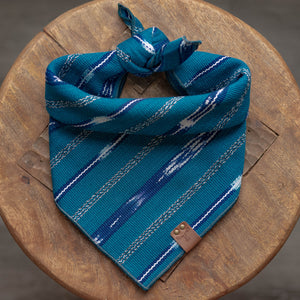 The Azul bandana is made from a mid-weight handwoven Guatemalan fabric. This bandana is a classic square style with a finished rolled edge.
