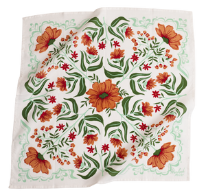 Our bandanas are a classic square style with a finished rolled edge. To tie your bandana, fold the bandana across the diagonal to create a triangle. Roll the bandana to the desired length and tie around your pet's neck.