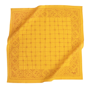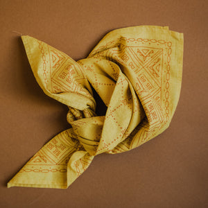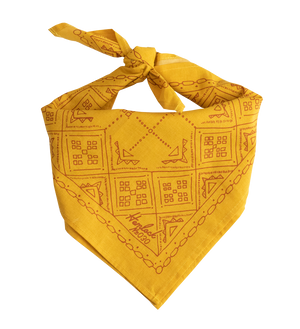 Our bandanas are a classic square style with a finished rolled edge. To tie your bandana, fold the bandana across the diagonal to create a triangle. Roll the bandana to the desired length and tie around your pet's neck.