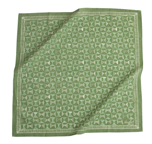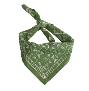 Our bandanas are a classic square style with a finished rolled edge. To tie your bandana, fold the bandana across the diagonal to create a triangle. Roll the bandana to the desired length and tie around your pet's neck.