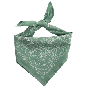 Our bandanas are a classic square style with a finished rolled edge. To tie your bandana, fold the bandana across the diagonal to create a triangle. Roll the bandana to the desired length and tie around your pet's neck.