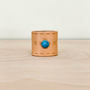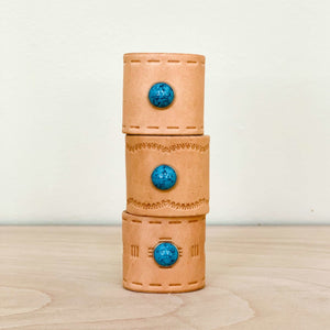 Handmade leather Bandana slide - crafted from genuine oiled leather and adorned with a turquoise-esque stud