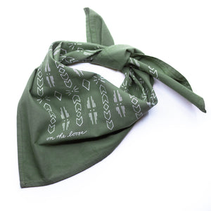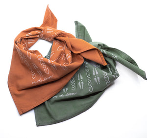 Our 'On The Loose' bandana is a classic cotton bandana designed exclusively for Moose Wears. Each bandana is hand dyed and screen printed in North Carolina. The cotton used for these bandanas is grown and milled in the south.