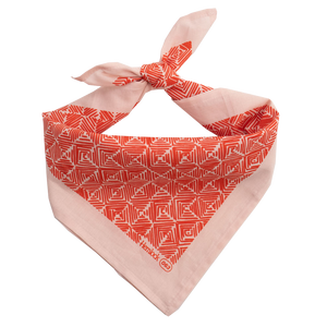 Our bandanas are a classic square style with a finished rolled edge. To tie your bandana, fold the bandana across the diagonal to create a triangle. Roll the bandana to the desired length and tie around your pet's neck.