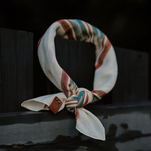 Our Taos bandana is made from a 100% cotton fabric that was handwoven in Guatemala. It is a lightweight and durable fabric. This bandana is a classic square style with a finished rolled edge.