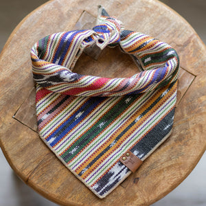 Our Tikal bandana is made from a 100% cotton fabric that was handwoven in Guatemala. This bandana is a classic square style with a finished rolled edge.