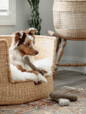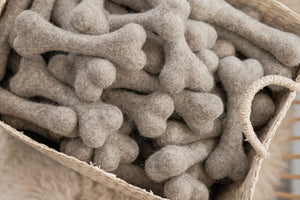 New Zealand wool. They are the perfect toy for indoor play; the soft fully-felted toy is gentle on your pup's mouth and floors.