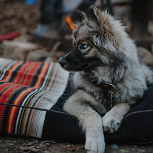 Our bandanas are a classic square style with a finished rolled edge. To tie your bandana, fold the bandana across the diagonal to create a triangle. Roll the bandana to the desired length and tie around your pet's neck.
