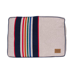 This pet bed is inspired by the beauty that is the Yellowstone National Park. Bold colored stripes are on a natural colored background.