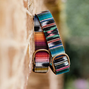 Our Catarina Collar is made from a handwoven Guatemalan textile.