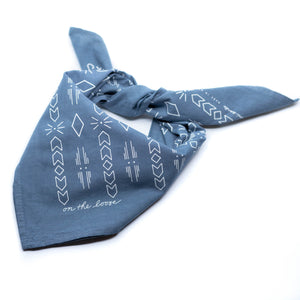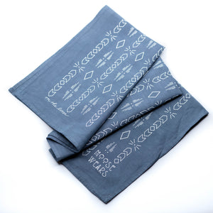 Our 'On The Loose' bandana is a classic cotton bandana designed exclusively for Moose Wears. Each bandana is hand dyed and screen printed in North Carolina. The cotton used for these bandanas is grown and milled in the south.