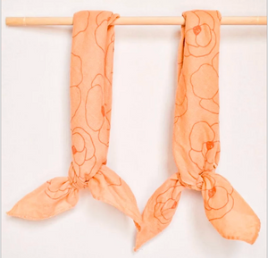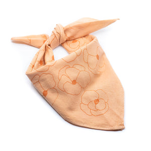 Our bandanas are a classic square style with a finished rolled edge. To tie your bandana, fold the bandana across the diagonal to create a triangle. Roll the bandana to the desired length and tie around your pet's neck.