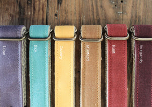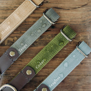 Our Waxed Canvas Martingale Collar is made from a heavyweight waxed fabric.