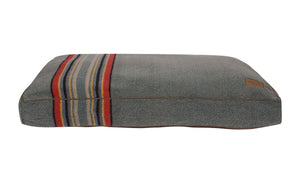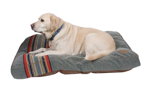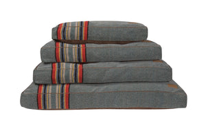 Inspired by the classic camp blanket, the Yakima bed features a knitted Berber fleece backed with quilted faux suede.